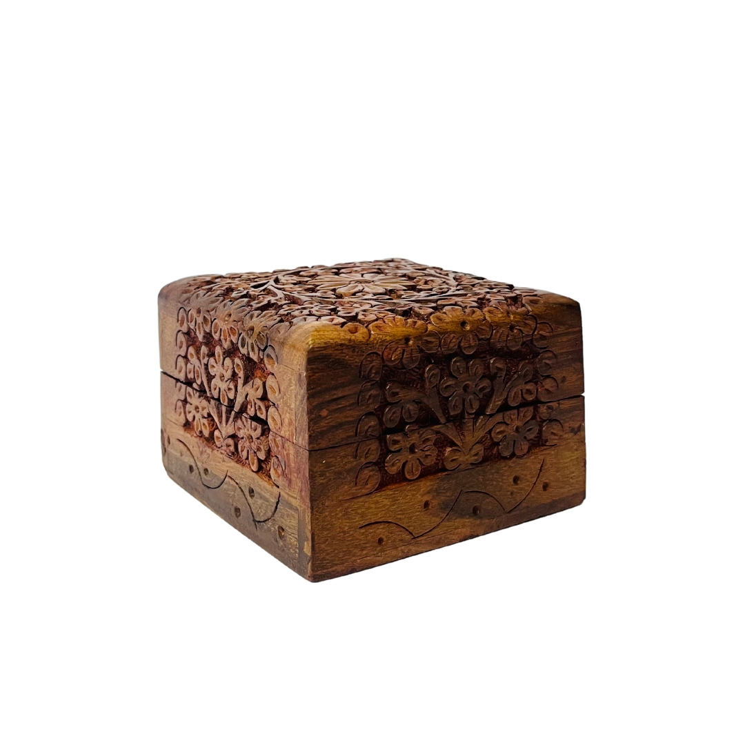 - Beautifully hand-carved wooden box.